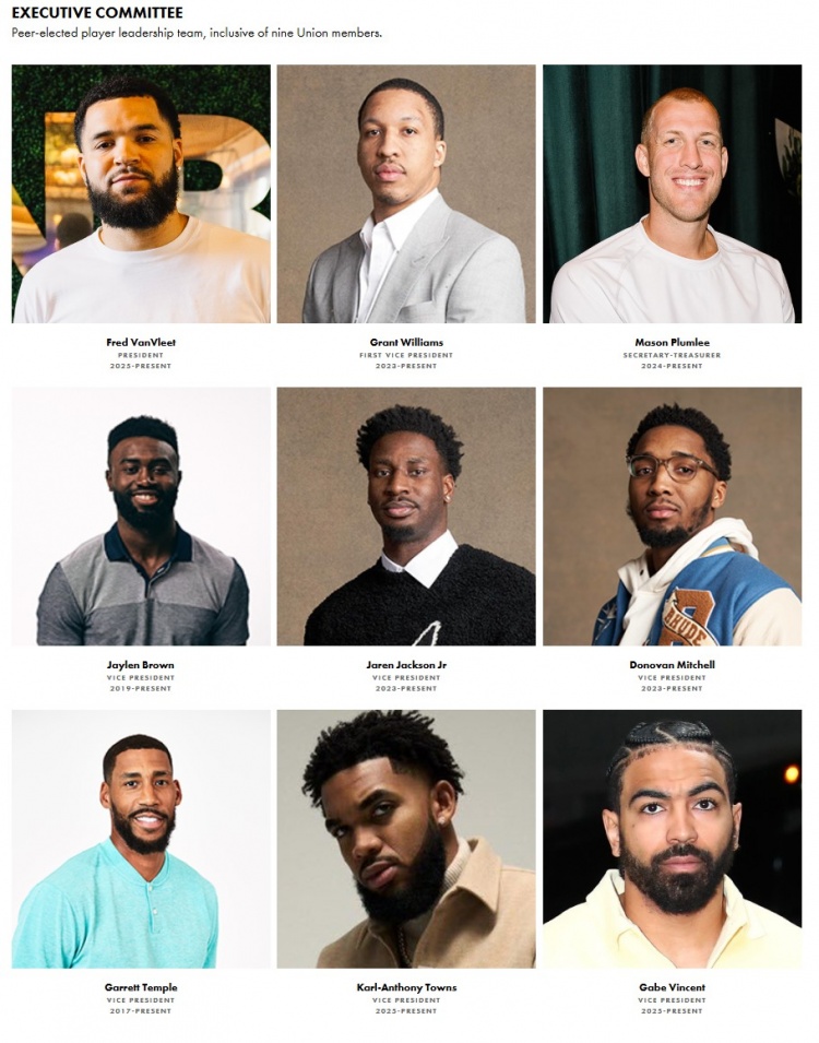 NBPA执行委员会九大成员:范乔丹+米切尔/布朗/文森特等7位副主席
